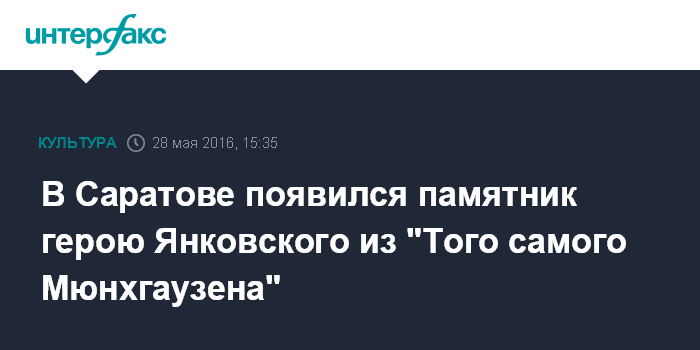 В Саратове появился памятник герою Янковского из "Того самого Мюнхгаузена"