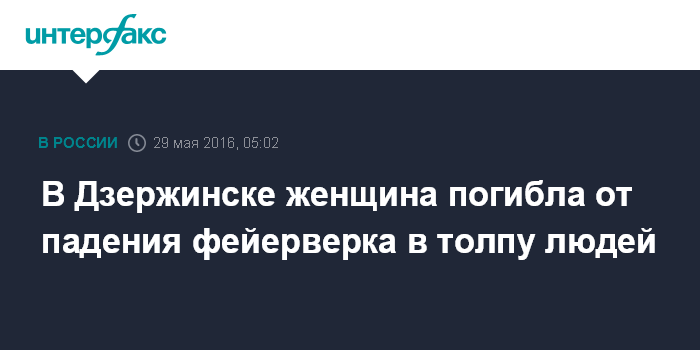 Москва. 29 мая. INTERFAX.RU - Следственный комитет возбудил уголовное дело по факту гибели женщины 1951 года рождения в результате падения по время праздничного салюта в городе Дзержинске Нижегородской области одного из элементов неразорвавшегося фейерверка в толпу людей, сообщается на сайте следственного управления СК РФ по Нижегородской области.