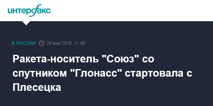Москва. 29 мая. INTERFAX.RU - Ракета-носитель "Союз-2.1б" запущена в воскресенье с космодрома Плесецк (Архангельская область), сообщает Минобороны России.