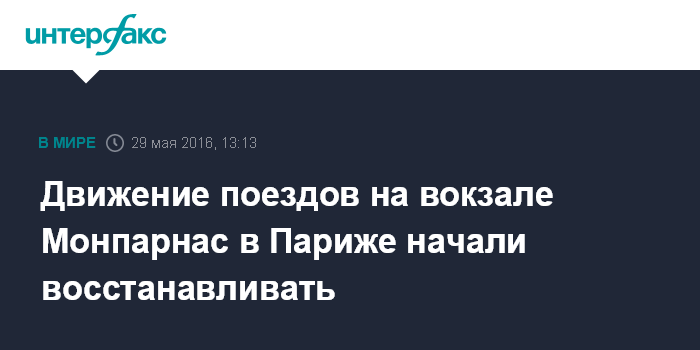 Движение поездов на вокзале Монпарнас в Париже начали восстанавливать