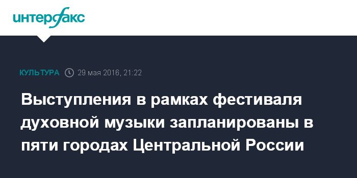 Выступления в рамках фестиваля духовной музыки запланированы в пяти городах Центральной России
