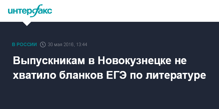 Москва. 30 мая. INTERFAX.RU - Выпускники одной из школ Новокузнецка (Кемеровская область) не смогли сдать в пятницу единый государственный экзамен по литературе из-за того, что им не хватило бланков, сообщила пресс-служба администрации города.