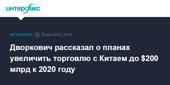 Дворкович рассказал о планах увеличить торговлю с Китаем до $200 млрд к 2020 году