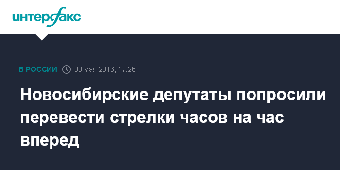 Москва. 30 мая. INTERFAX.RU - Заксобрание Новосибирской области просит Госдуму перевести регион в другой часовой пояс, опережающий московское время на четыре часа.