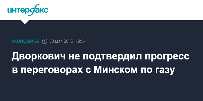 Москва. 30 мая. INTERFAX.RU - Россия и Белоруссия пока не достигли прогресса в переговорах по газу, заявил журналистам вице-премьер РФ Аркадий Дворкович. Он ранее проводил переговоры по этому вопросу со своим коллегой Владимиром Семашко.