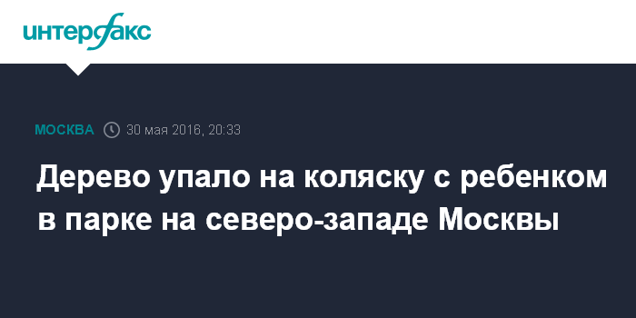 Москва. 30 мая. INTERFAX.RU - Московские следователи проводят проверку в связи падением дерева на коляску с ребенком, сообщили "Интерфаксу" в Следственном управлении Следственного комитета РФ по Москве.