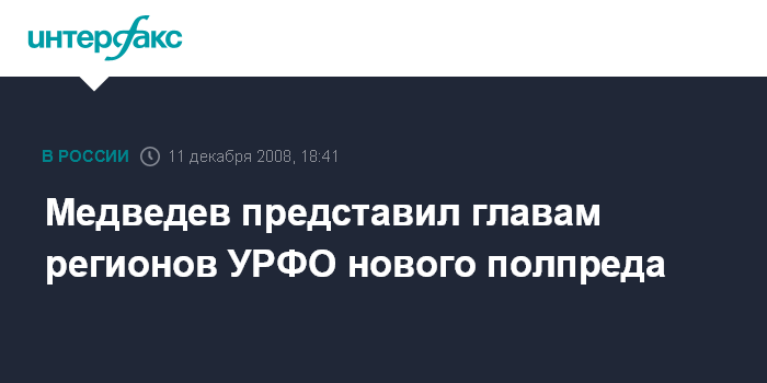 Москва. 11 декабря. INTERFAX.RU - Президент Дмитрий Медведев лично представил губернаторам Уральского федерального округа своего нового полномочного представителя в этом округе Николая Винниченко и выразил надежду, что Винниченко сможет не только сохранить достигнутое при его предшественнике Петре Латышеве, но и развивать этот регион.