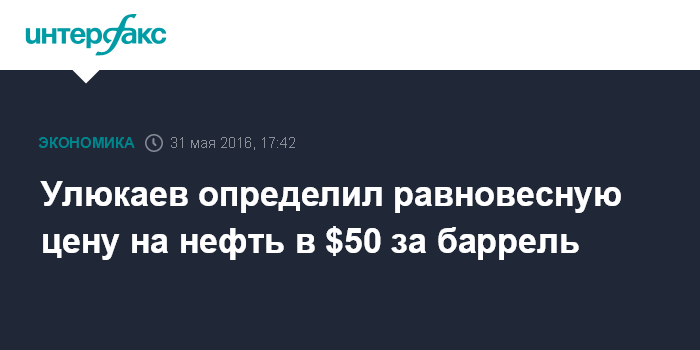 "Но этого и не требуется - сейчас рынки находят новые равновесия, если говорить о нефти, это от 50 до 50 с небольшим долларов за баррель, что комфортно и для поставщиков энергоносителей, и для потребителей", - считает Улюкаев.