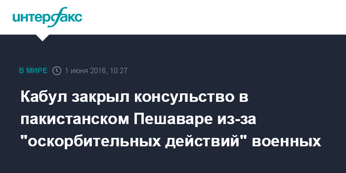 Москва. 1 июня. INTERFAX.RU - Консульство Афганистана в северном пакистанском городе Пешавар закрылось в минувший вторник.