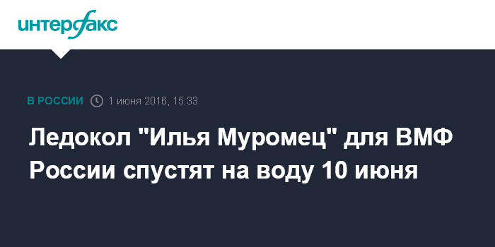 Москва. 1 июня. INTERFAX.RU - "Адмиралтейские верфи" (входит в Объединенную судостроительную корпорацию) спустят на воду головной ледокол проекта 21180 "Илья Муромец" 10 июня, сообщил главком ВМФ России адмирал Владимир Королев.