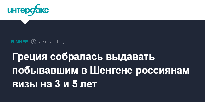 Москва. 2 июня. INTERFAX.RU - Греция намерена выдавать трехлетние и пятилетние визы всем россиянам, хоть раз бывавшим до этого в Шенгенской зоне, заявил замглавы греческого МИД Никос Ксидакис.