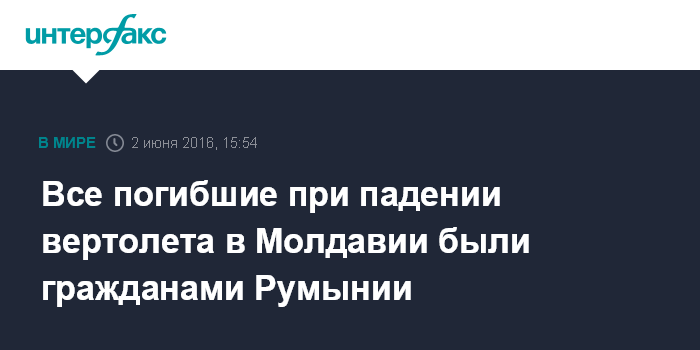 Все находившиеся на борту вертолета люди являлись гражданами Румынии, которая оказывает помощь в экстремальных ситуациях Молдавии, не имеющей собственной санитарной авиации.