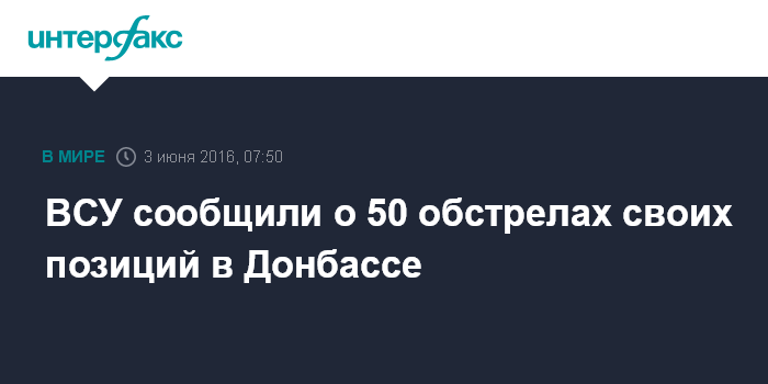 Москва. 3 июня. INTERFAX.RU - Позиции украинских военных в Донбассе за прошедшие сутки обстреливали около 50 раз, утверждают в пресс-центре штаба силовой операции.