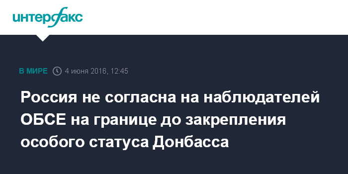 Россия не согласна на наблюдателей ОБСЕ на границе до закрепления особого статуса Донбасса