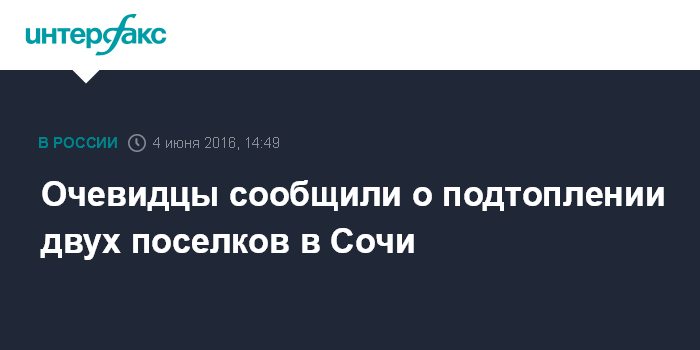 По словам собеседника агентства, в поселке Вардане затоплена автомобильная дорога, а в Дагомысе вода заливает подвалы жилых домов. "В Дагомысе река Ира вышла из берегов и затопила улицы", - добавил очевидец.