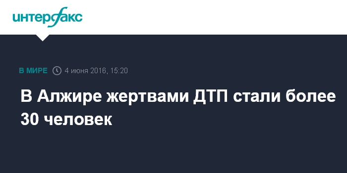 Москва. 4 июня. INTERFAX.RU - Не менее 33 человек погибли в результате столкновения автобуса и грузовика на севере Алжира, сообщило в субботу агентство APS.