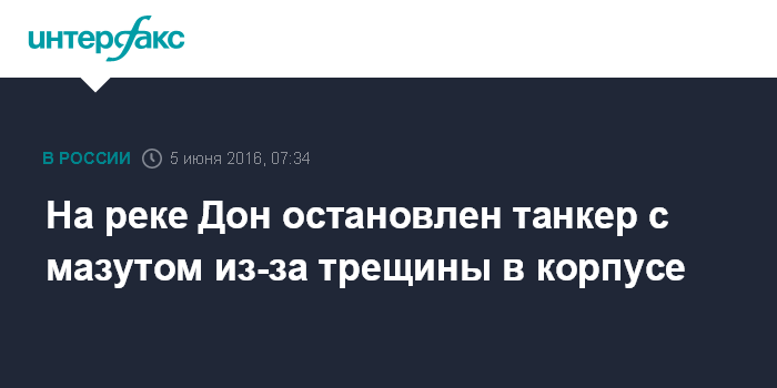 "Вечером в субботу на реке Дон при прохождении танкером Волгонефть-247, перевозившим 4.5 тыс. тонн мазута из Волгограда в порт Кавказ, было остановлено движение. Причиной остановки танкера стало наличие трещины в корпусе, в которую начала поступать вода. Попадания нефтепродуктов в реку Дон нет. Экипаж своими силами продолжает откачивать воду", - сказал собеседник агентства.