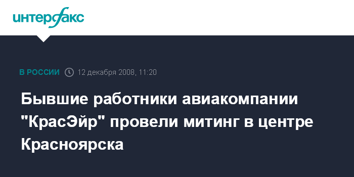 Москва. 12 декабря. INTERFAX.RU - Более 100 бывших работников авиакомпании "КрасЭйр" вышли на центральную площадь Красноярска с требованием к властям решить проблему выплаты задолженности по зарплате и выходным пособиям.