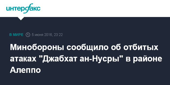 Минобороны сообщило об отбитых атаках "Джабхат ан-Нусры" в районе Алеппо