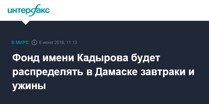 Фонд имени Кадырова будет распределять в Дамаске завтраки и ужины