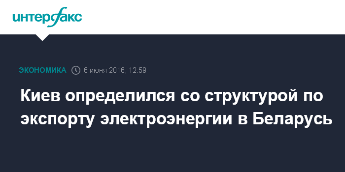 "Одним из важных вопросов, обсуждавшихся во время встречи (главы Минэнергоугля Украины Игоря Насалика и первого заместителя министра энергетики Беларуси Леонида Шенца 6 июня в Минске - ИФ) является возобновление экспорта электроэнергии из Украины в Беларусь, который был временно приостановлен с ноября 2014 года … Стороны определили, что поставки электроэнергии будет осуществлять госпредприятие "Укринтерэнерго", - указано в сообщении.