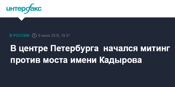 Как сообщалось, топонимическая комиссия Санкт-Петербурга рекомендовала губернатору Георгию Полтавченко назвать мост в честь Кадырова. Инициатива встретила сопротивление со стороны градозащитников и ряда краеведов, а также депутатов Законодательного собрания.