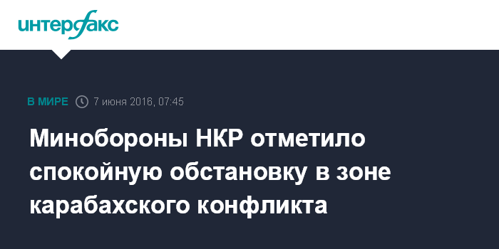 Москва. 7 июня. INTERFAX.RU - Ситуация на линии соприкосновения вооруженных сил непризнанной Нагорно-Карабахской республики (НКР) и Азербайджана в ночь на вторник в целом оставалась относительно спокойной, сообщили "Интерфаксу" в пресс-службе Минобороны НКР.