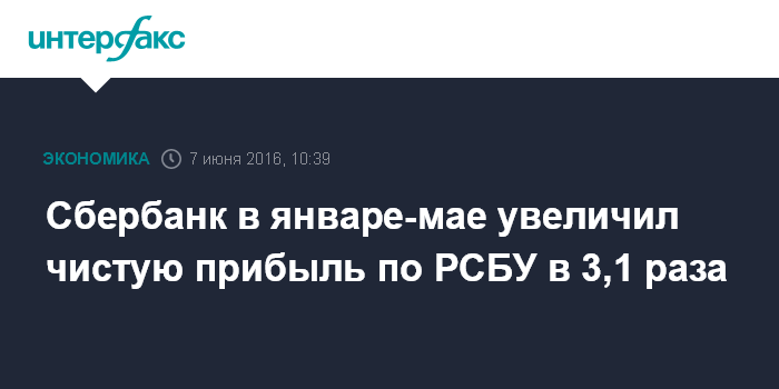 В мае 2016 года Сбербанк получил чистую прибыль в размере 42 млрд рублей против 10,6 млрд рублей в мае 2015 года.