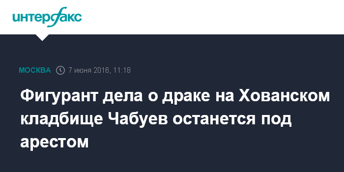Москва. 7 июня. INTERFAX.RU - Мосгорсуд признал законным арест до середины июля бывшего начальника территориального отделения №3 ГБУ "Ритуал" Юрия Чабуева, обвиняемого по делу о массовой драке на Хованском кладбище, передает корреспондент "Интерфакса".