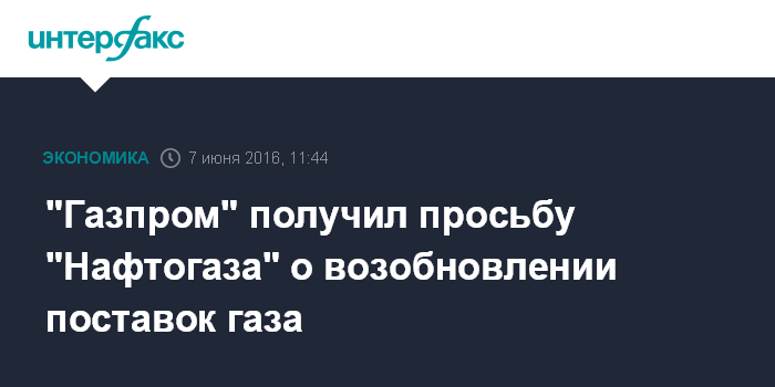 "Да, действительно, вчера мы получили официальное письмо от руководителя "Нафтогаза Украины" с просьбой о возобновлении поставок российского газа. Речь идет от девяти месяцах: втором полугодии 2016 года и первом квартале 2017 года. То есть, о всей предстоящей зиме и периоде подготовки к ней. Изменение настроений украинской компании понятно. Суточный объем реверса из Европы сократился в июне в 6,4 раза по сравнению с маем и в 16,8 раза по сравнению с апрелем", - прокомментировал он.