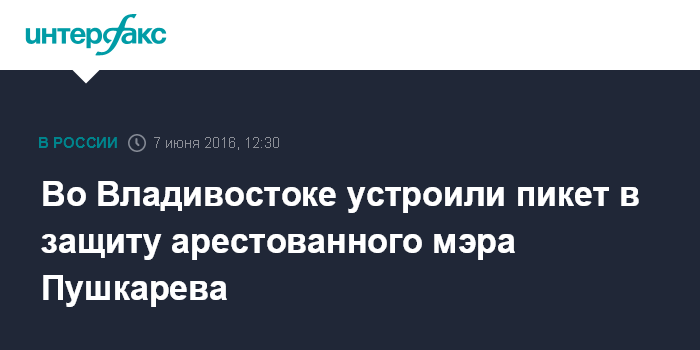 Москва. 7 июня. INTERFAX.RU - Жители Владивостока собрались во вторник в сквере имени Муравьева-Амурского на пикет в поддержку арестованного мэра города Игоря Пушкарева, сообщил корреспондент агентства "Интерфакс".