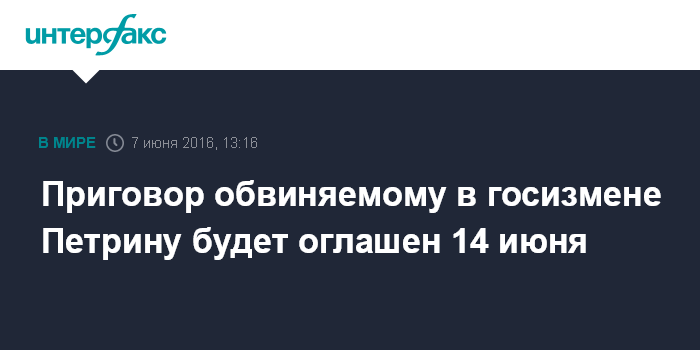 Приговор обвиняемому в госизмене Петрину будет оглашен 14 июня