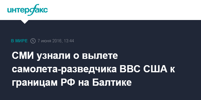 Москва. 7 июня. INTERFAX.RU - С очередным разведывательным заданием к российским рубежам на Балтике во вторник вылетел самолет RC-135V ВВС США, сообщают западные информационные порталы, отслеживающие перемещение военной авиации.