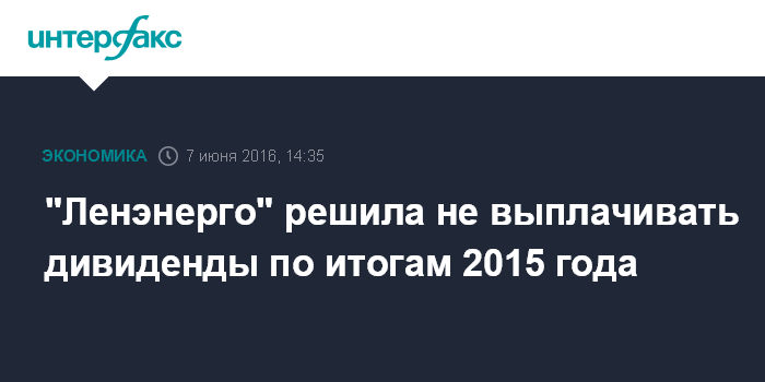 За 2014 год "Ленэнерго" также не выплачивало дивиденды из-за убытка.