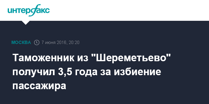 Таможенник из "Шереметьево" получил 3,5 года за избиение пассажира