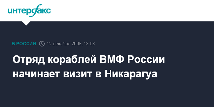 Москва. 12 декабря. INTERFAX.RU - Корабли Военно-морского флота России посетят Никарагуа с визитом в пятницу, сообщил "Интерфаксу" помощник главкома ВМФ капитан первого ранга Игорь Дыгало.