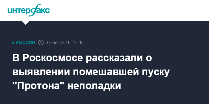 Москва. 8 июня. INTERFAX.RU - В Роскосмосе связывают своевременное обнаружение неполадки перед запуском ракеты-носителя "Протон-М" со спутником Intelsat DLA2 с Байконура с ужесточением контроля качества.