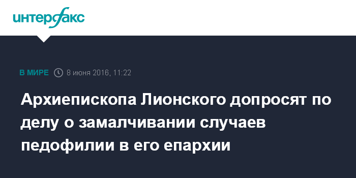Архиепископа Лионского допросят по делу о замалчивании случаев педофилии в его епархии