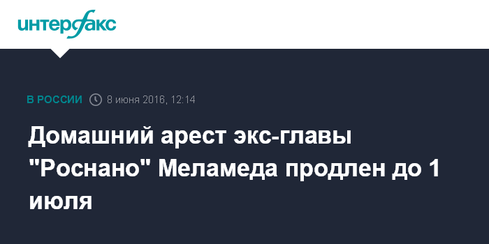 Москва. 8 июня. INTERFAX.RU - Басманный суд Москвы санкционировал продление до 1 июля домашний арест экс-главы "Роснано" Леонида Меламеда, обвиняемого в организации растраты более 220 млн рублей госкорпорации, сообщила "Интерфаксу" пресс-секретарь Юнона Царева в среду.
