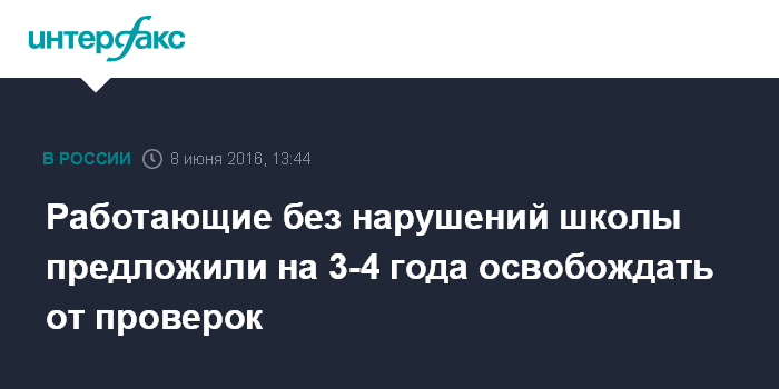 Москва. 8 июня. INTERFAX.RU - Школы, работающие без нарушений, необходимо освобождать от проверок на срок от трех до четырех лет, считает министр образования и науки РФ Дмитрий Ливанов.