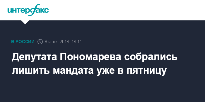 Депутата Пономарева собрались лишить мандата уже в пятницу