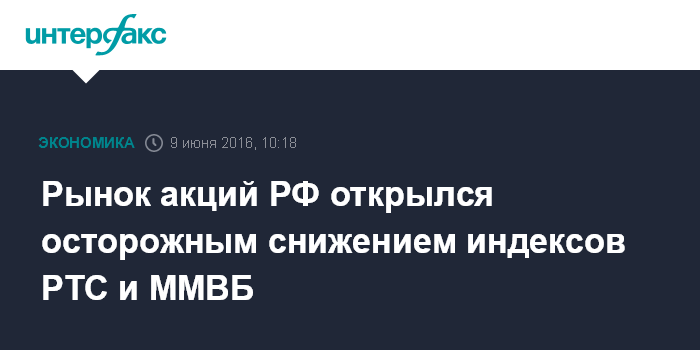 Москва. 9 июня. INTERFAX.RU - Рынок акций РФ открылся в четверг разнополярной динамикой цен blue chips на фоне смешанных внешних факторов (снижение Азии и Европы компенсируется ростом нефти), индексы РТС и ММВБ за минуту торгов просели всего на 0,01-0,1%.