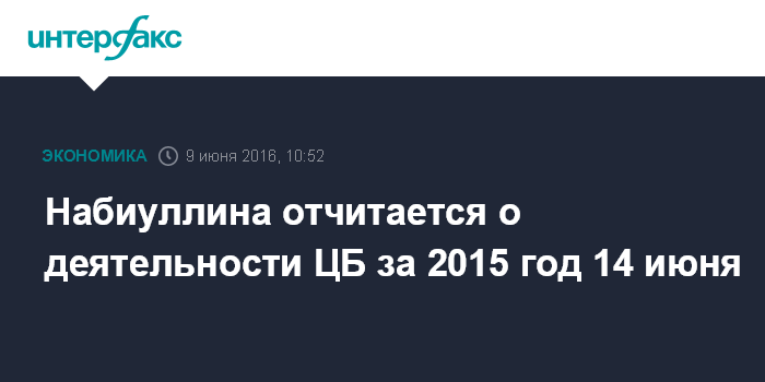 Набиуллина отчитается о деятельности ЦБ за 2015 год 14 июня