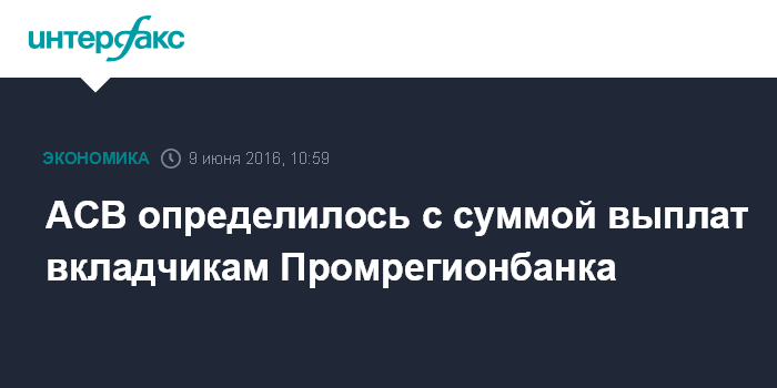 Москва. 9 июня. INTERFAX.RU - Агентство по страхованию вкладов (АСВ) выплатит вкладчикам московского Промрегионбанка около 3,26 млрд рублей, говорится в сообщении АСВ.