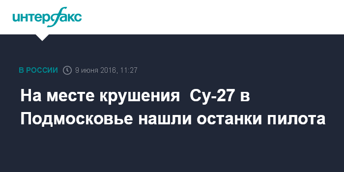 Москва. 9 июня. INTERFAX.RU - На месте крушения Су-27 в Подмосковье обнаружены останки пилота, сообщил "Интерфаксу" источник в экстренных службах.