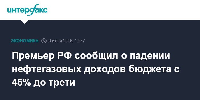 Премьер РФ сообщил о падении нефтегазовых доходов бюджета с 45% до трети