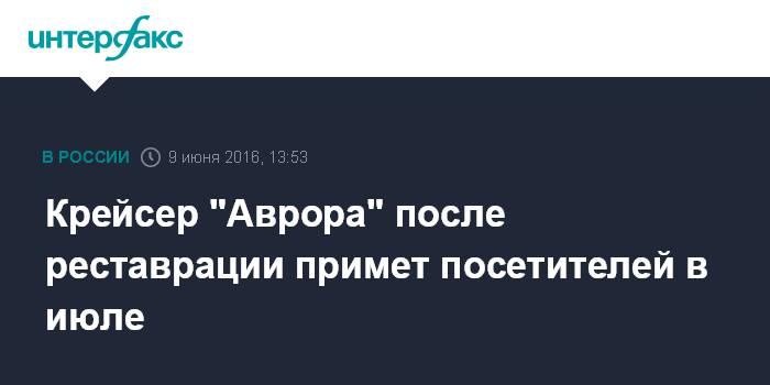 Москва. 9 июня. INTERFAX.RU - Легендарный крейсер "Аврора" возвращается после реставрации в Петербург, сообщил журналистам в четверг начальник управления культуры Минобороны России Антон Губанков.