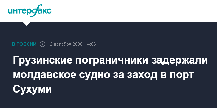 Москва. 12 декабря. INTERFAX.RU - Пограничники береговой охраны Грузии задержали в Поти сухогруз "Медка", плавающий под молдавским флагом, сообщили "Интерфаксу" в пятницу в пограничной полиции.