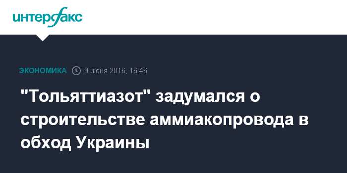 Москва. 9 июня. INTERFAX.RU - ОАО "Тольяттиазот" вместе с оператором российской части аммиакопровода Тольятти-Одесса ОАО "Трансаммиак" изучает возможность строительства ветки в обход Украины, сообщил "Интерфаксу" пресс-секретарь "Тольяттиазота" Дмитрий Масалитин.