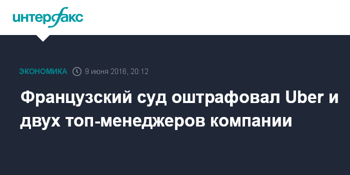 Москва. 9 июня. INTERFAX.RU - Суд во Франции оштрафовал сервис заказа такси Uber на 800 тыс. евро за незаконное предоставление транспортных услуг и за привлечение к работе непрофессиональных водителей.